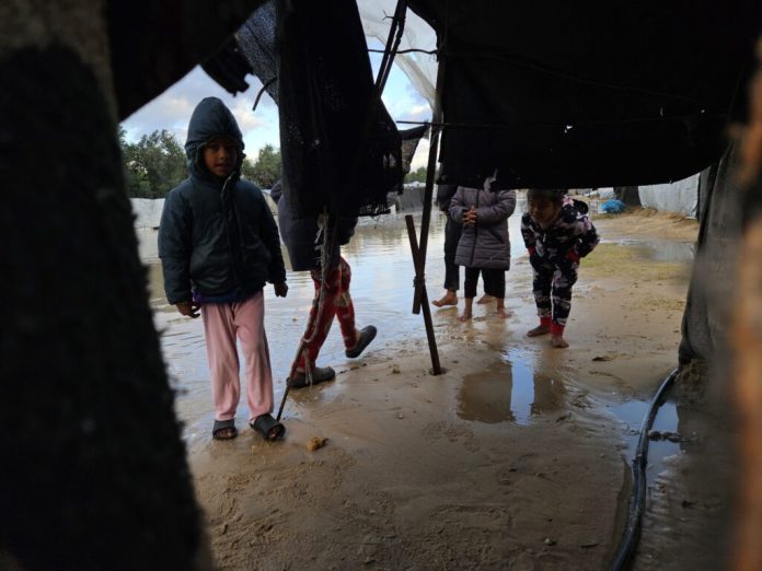 Familia se numără printre sutele de mii de oameni care se adăpostesc în tabere de corturi și clădiri devastate de război în Gaza, o zonă care se confruntă cu ierni reci și umede, cu temperaturi care scad sub 10 grade Celsius noaptea.