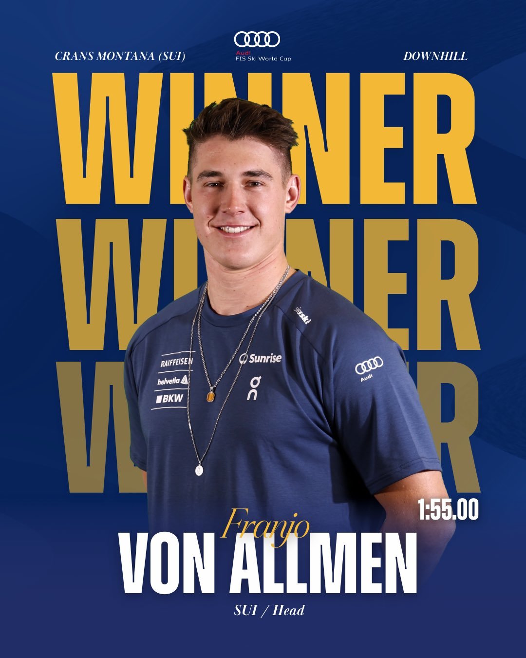 Elveţianul Franjo von Allmen a câştigat, duminică, pentru al doilea an consecutiv, proba de coborâre de la Crans-Montana, ultima probă a Cupei Mondiale de schi alpin înaintea Jocurilor Olimpice.