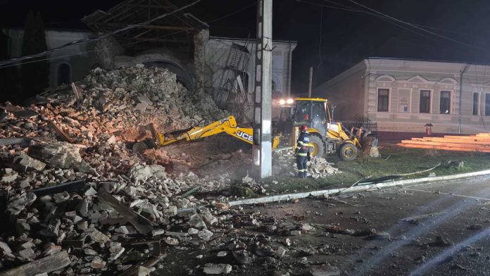 UPDATE – O biserică s-a prăbuşit în judeţul Sălaj, în apropierea Poliţiei Oraşului Cehu Silvaniei / O poliţistă care se îndrepta spre serviciu a fost rănită / O maşină, avariată / Se caută alte posibile victime / Biserica, în renovare – VIDEO