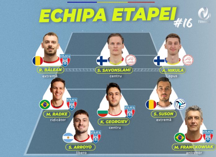 Rareș Bălean (Steaua București) – 18 puncte (+10). Metronomul Stelei, internaționalul român este jucătorul cu cele mai multe prezențe în echipa etapei. A ajuns la 7. Rareș a jucat excelent împotriva fostei sale formații și a reușit 15 puncte în atac, cu 48% eficiență. Și-a mai trecut în cont trei blocaje. Pe preluare nu a greșit nimic, cifrele sale: 28% recepție pozitivă și 22% excelentă, în fața unei echipe care servește foarte bine.