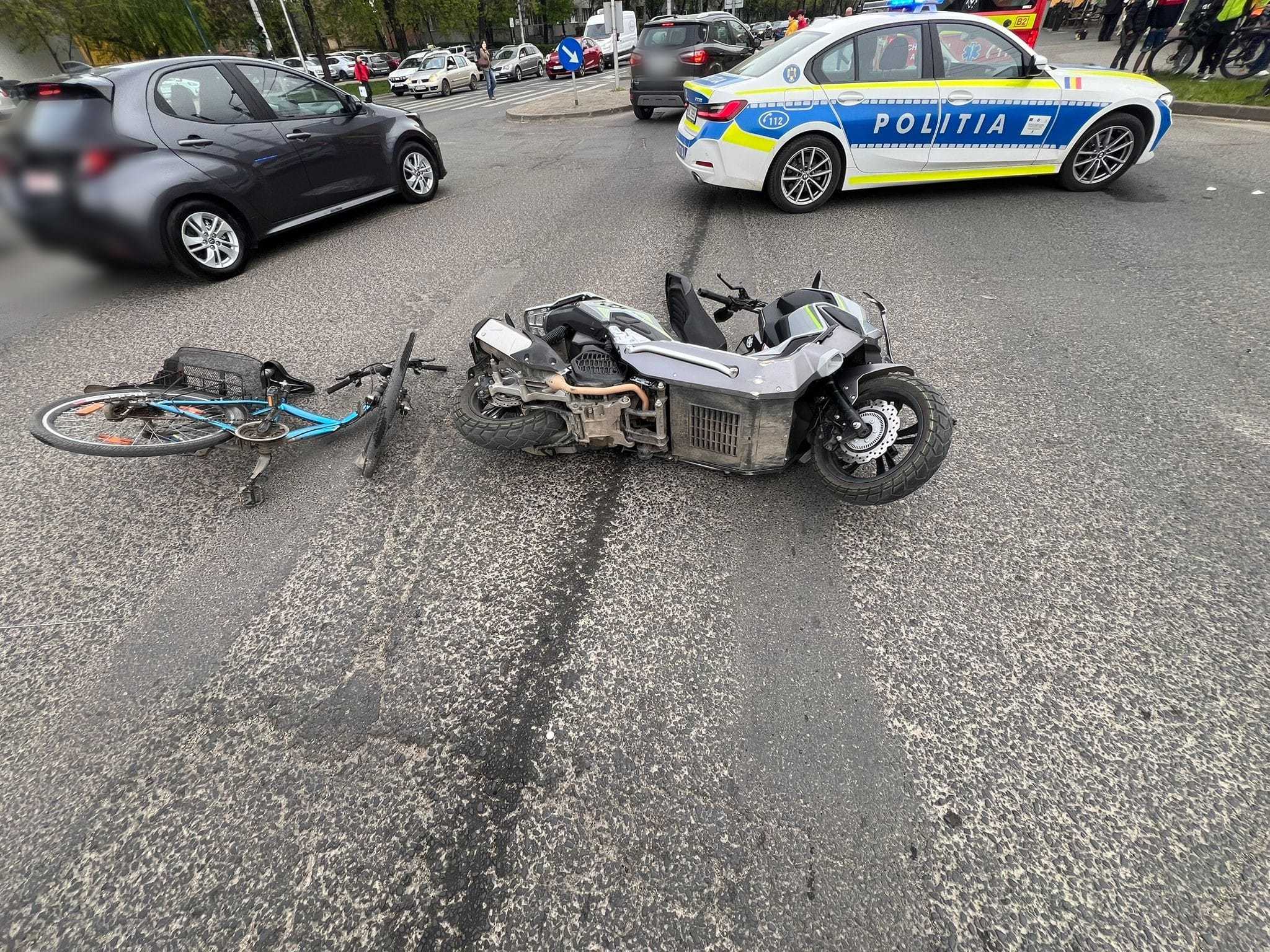 Un biciclist de 57 de ani şi un motociclist de 35 de ani au fost răniţi în urma unui accident care s-a produs, marţi, pe Calea Şagului din Timişoara. Biciclistul a traversat strada pe trecerea de pietoni, pe culoarea roşie a semaforului.