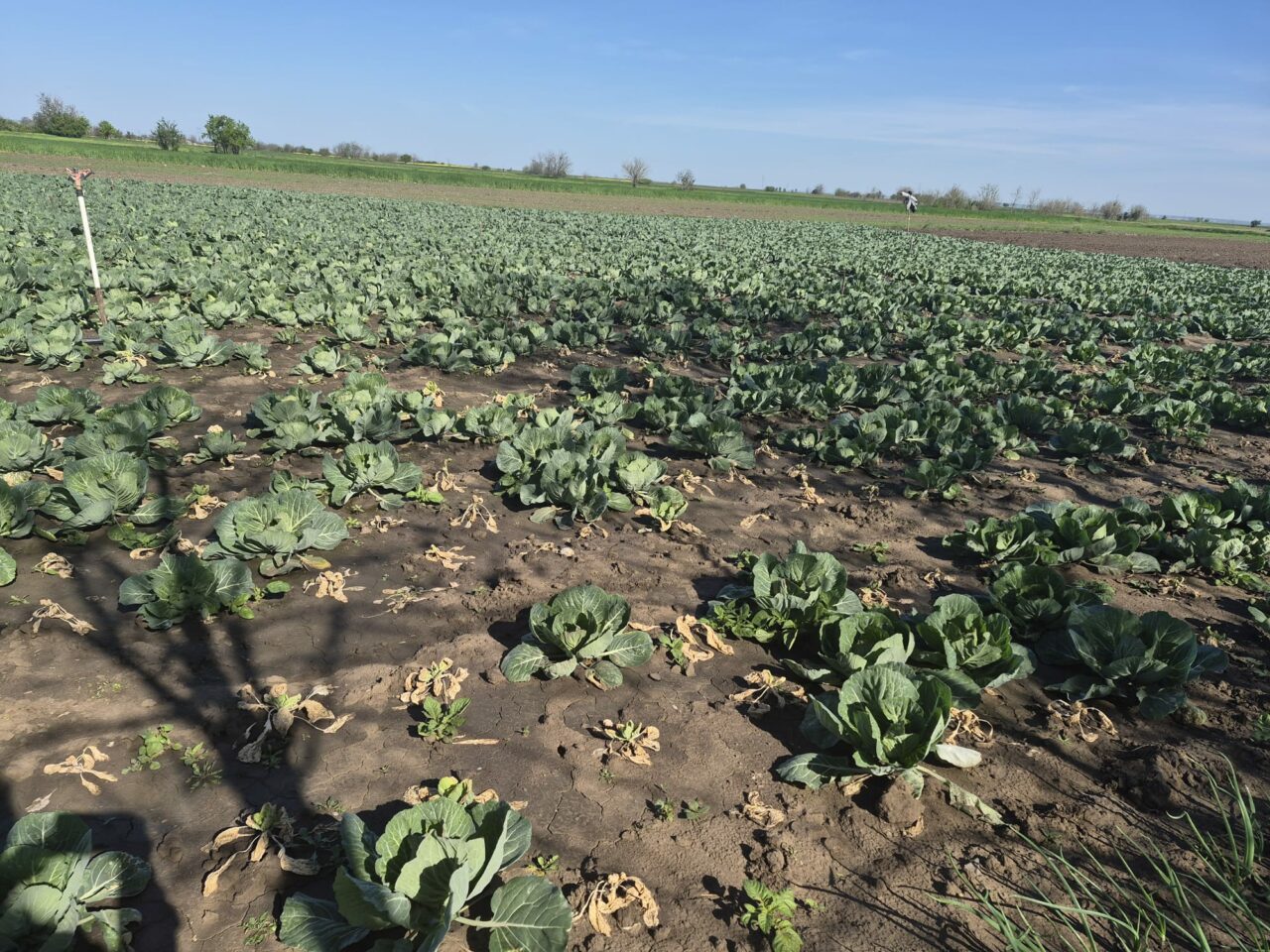 Asa arata cultura de varza din aceasta primavara din localitatea Moțăței din judetul Dolj. Plantele au fost stresate din cauza fluctuatiilor de temperatura si nu s au dezvoltat normal. Acum fermierii care au investit 13.000 lei pentru un hectar cultivat cu varza numară pagubele. ” Noaptea am avut și 2 grade. Ziua a fost mai cald și toate aceste schimbări au afectat cultura. Nu știu dacă vom vinde ceva”, spune Ion Paraschiv, fermier.
