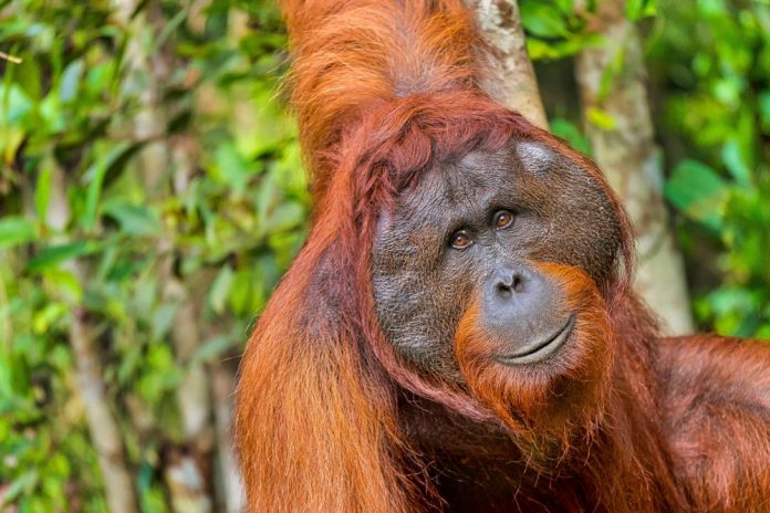 Orangutanul din Sumatra, specie aflată în pericol foarte mare de dispariție, a fost filmat pentru prima dată în timp ce folosea un pod suspendat pentru a traversa un drum.