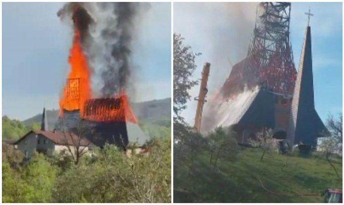 O biserică din Maramureș, aflată în construcție de 12 ani, a fost distrusă de un incendiu, la o zi după montarea clopotelor